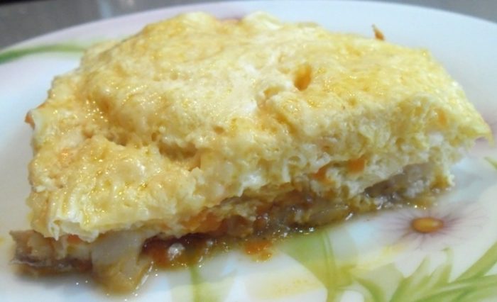 Блюдо нередко получается чересчур сухим. Лучше мороженную рыбу предварительно обжарить на раскаленной сковороде.