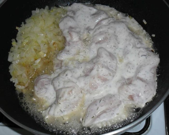 Добавьте приготовленный кефир и воду. Так как это блюдо часто готовится во время похудения тушить рыбу стоит не больше 30 минут и с прикрытой крышкой