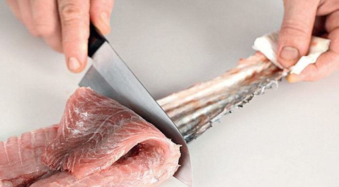 - Филе потрошёной пикши порезать на порционные кусочки.