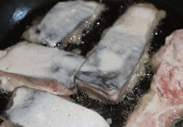 Взять филе пикши, помыть и просушить его бумажным полотенцем, вынуть все косточки. Нарезать на ровненькие порционные кусочки шириной в 8 см, обильно полить лимонным соком. Посолить с двух сторон и натереть молотым перчиком и итальянскими травами для благоухания. Можно использовать в казачестве приправ: базилик, анис, кориандр и майоран. Оставить мариноваться на полчасика.