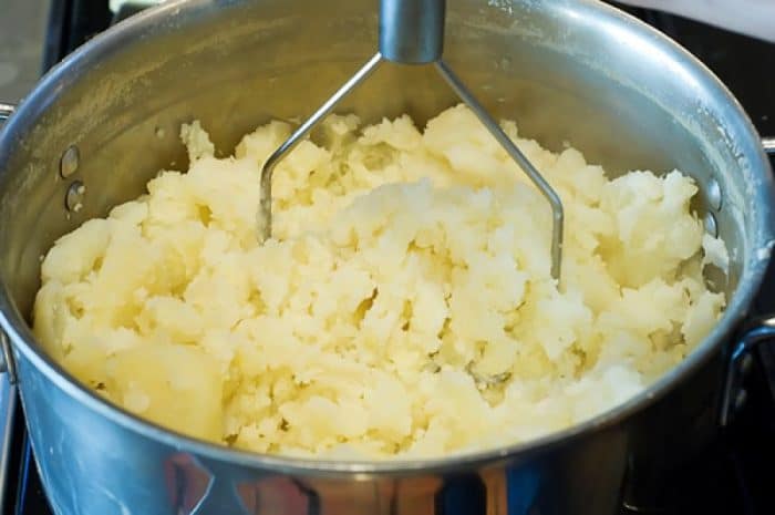 Лук слегка обжарить на сливочном масле и добавить его в картофельное пюре.