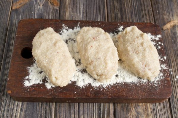 - Руками придать фаршу нужную форму и обмакнуть заготовки в сухари панировочные.
