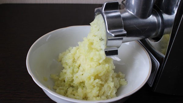 Фарш из путассу готовится традиционным способом – рыба, луковицы и чеснок должны быть перекручены на мясорубке.