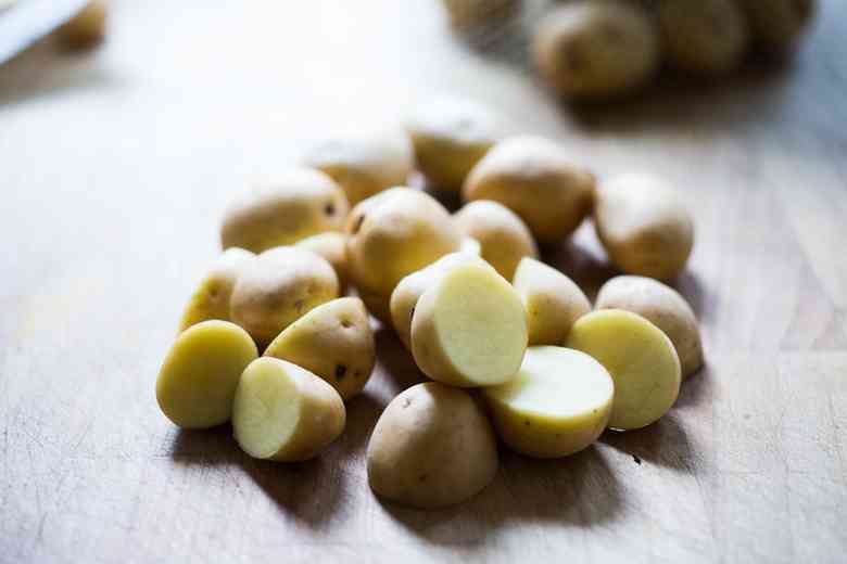 Порежьте картошку пополам. Если она крупная, разделите на несколько кусочков.