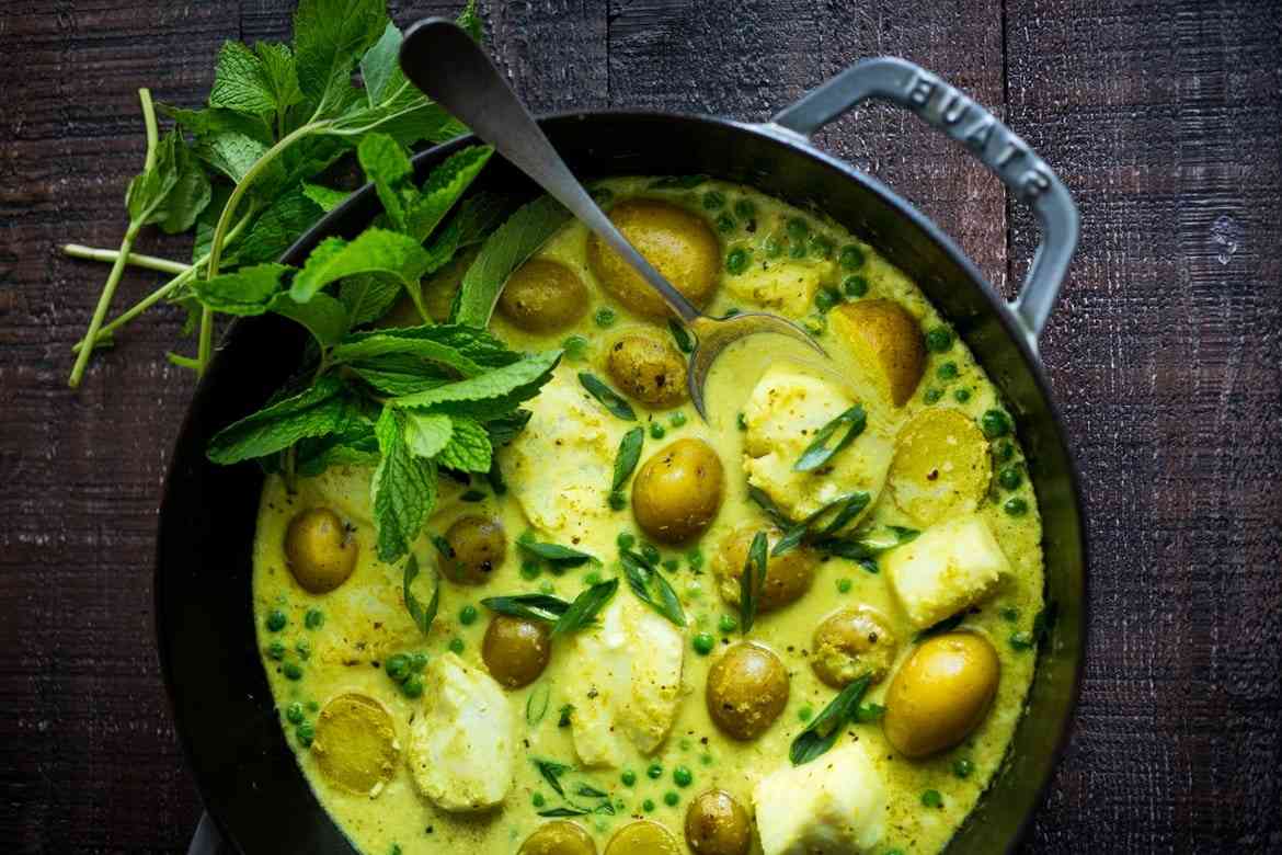 Рыбное карри с картофелем и зелёным горошком в ароматном соусе по рецепту балийской кухни. Простой ароматный ужин, который весьма полезен и при этом лёгок. Подавайте с рисом или другой крупой, чтобы сделать приём пищи более питательным.