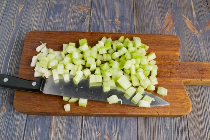1⁄2 корня сельдерея мелко нарезать (можно использовать сушеный сельдерей)