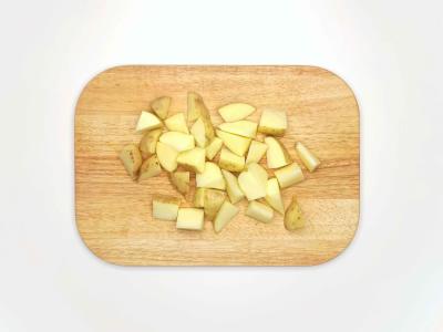 Духовку включите на 220 градусов. Если вы купили молодой картофель, то можете готовить его вместе со шкуркой. Разрежьте картофель на средние кусочки.