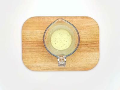 Половину кубика овощного бульона растворите в 100 мл кипятка. Затем добавьте мягкий сыр и соус Песто, перемешайте.