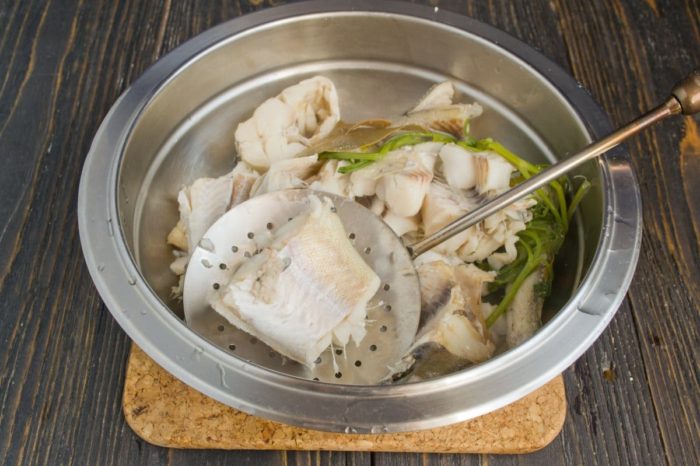 - Холодной водой залить рыбу и сварить в течение 5-7 мин.
