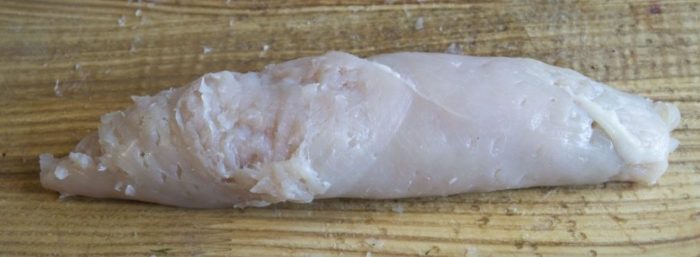 Тушка налима, предварительно нарезанная на удобные для прокрутки кусочки, закладывается в мясорубку. В тщательно перекрученное мясо добавляется сырое яйцо, мука, а также соль и перец.
