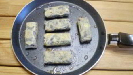 Брусочки нужно обмакнуть в кляр и поставить на разогретую сковородку. Жарить на оливковом или подсолнечном масле по 1-2 минуты до образования румяной корочки.