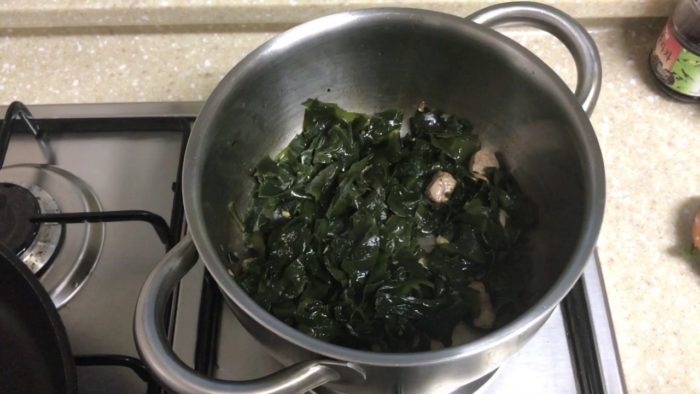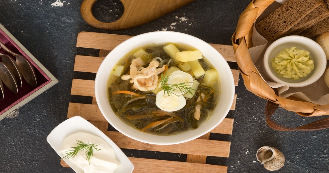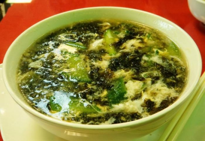 Суп с морской капустой и яйцом