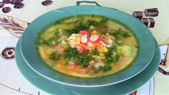 Суп с вареным яйцом и крабовыми палочками