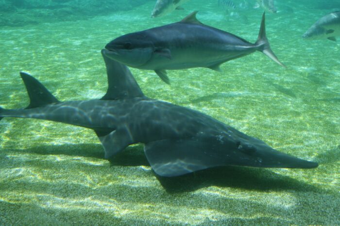 И последнее, что делает хрящевых идеальными охотниками — электропередача. У них сложная электро-сенсорная система. Включается рецепторами, покрывающими область головы и хвоста. Называются — ампулами Лоренцини. Эти крошечные поры чрезвычайно чувствительны и могут обнаруживать даже самые слабые электрические поля. Особенно те, которые создаются геомагнитным полем Земли или сокращением мышц жертвы. Белуга на фоне этих хищных сильно отстает. Даже представитель пугливой акулы (имеющих линию на лопасти плавников) достигает 1 м и может напасть на косяк мелких рыб в течение считанных секунд.