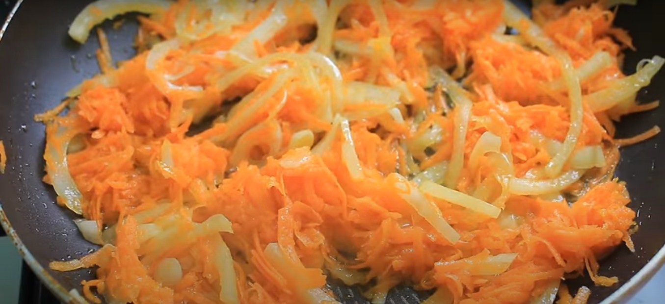 Морковь натрите на средней терке, лук нарежьте полукольцами и обжарьте овощи до готовности на растительном масле.
