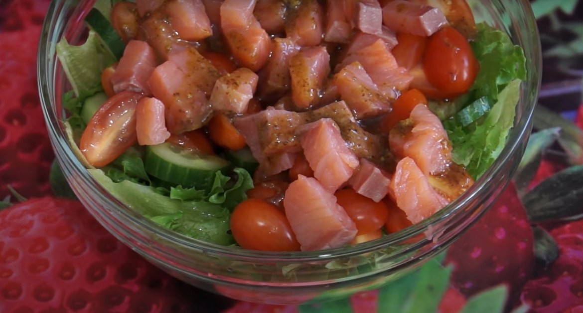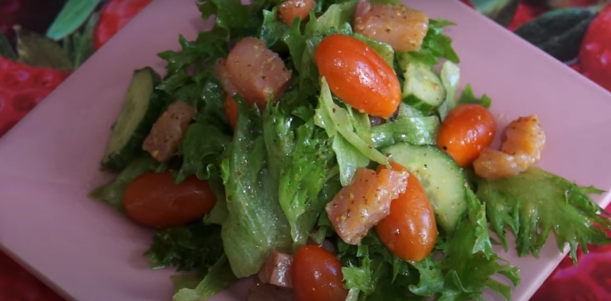Готовим простой салат со слабосоленой семгой
