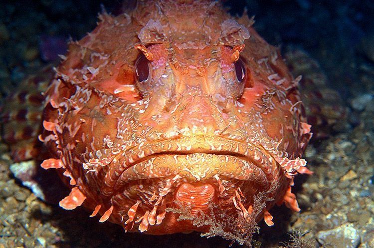 Другие названия скорпены — морской ерш или рыба-скорпион. Это хищная рыба, ползающая по дну и питающаяся креветками, мелкой рыбой, кальмарами. Периодически она сбрасывает шкуру.