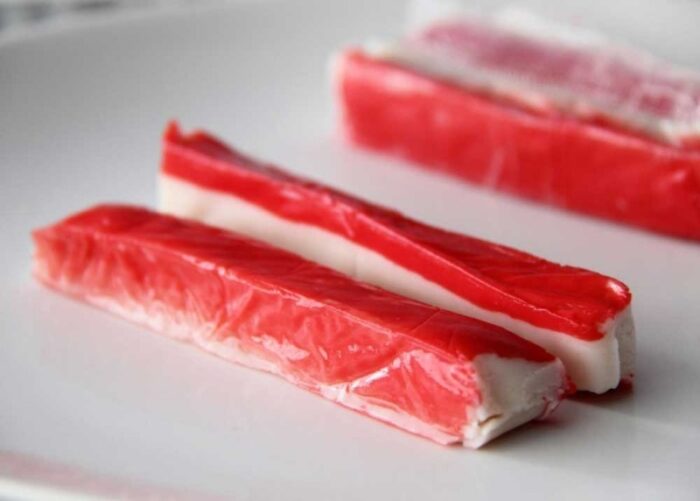 Снаружи палочки подкрашивают в красный оттенок, чтобы придать сходство с крабовым мясом.
