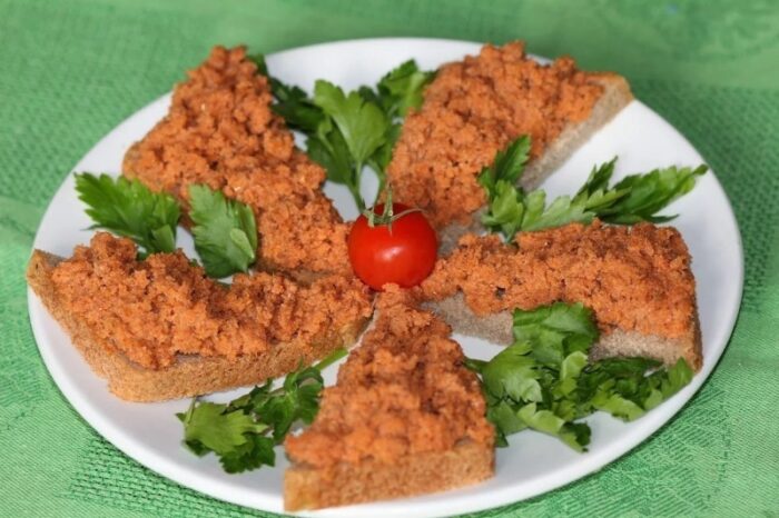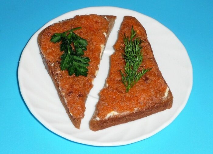 А теперь самая ответственная часть: намазываем получившуюся икру на хлеб и наслаждаемся!