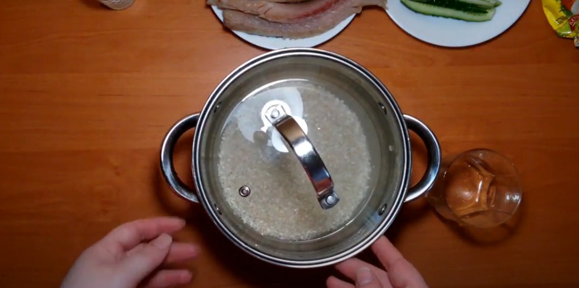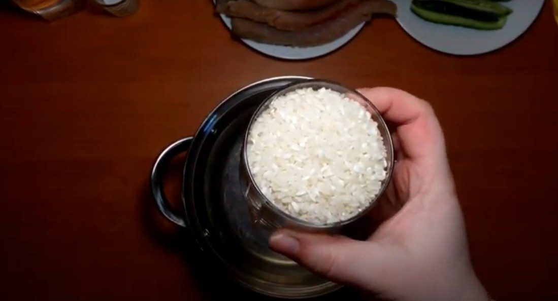 Подготовить рис для роллов, тщательно промыть его до прозрачной воды.