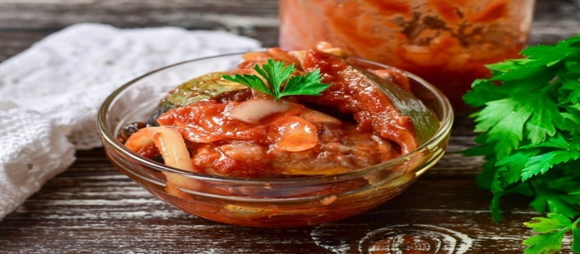Первым делом подготовьте скумбрию — очистите ее от костей и шкурки, оставив только филе. После этого нарежьте рыбу на небольшие кусочки и сложите в миску. Луковицы очистите и нашинкуйте полукружочками, выложите к рыбе. В отдельной емкости приготовьте маринад — смешайте уксус, масло, специи и томатную пасту. Затем поставьте смесь на медленный огонь и доведите до кипения.
