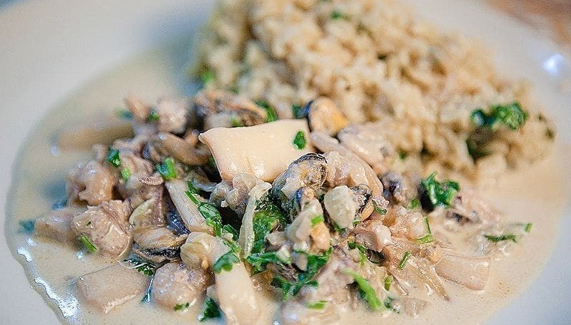 С кальмарами и мидиями