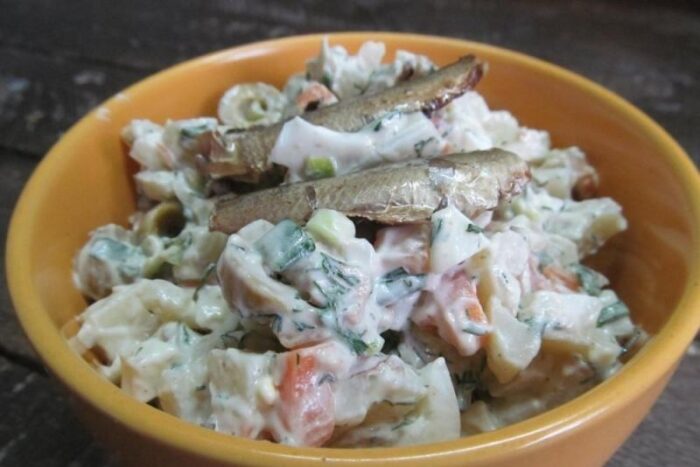 Со шпротами и оливками