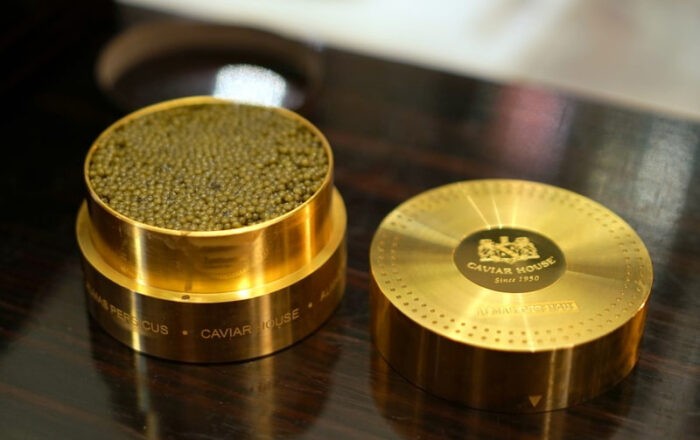 Это икра белой белуги, которая водится у берегов Ирана в Каспийском море. Стоимость 1 кг деликатеса — около 9 тыс. долларов, а в лондонском икорном бутике на улице Пикадилли ее продают в коробочке из чистого золота по цене 25 тыс. долларов.