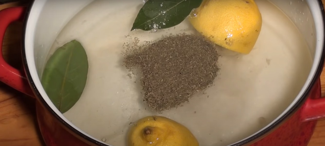 Выдавите из лимона весь сок в растрюлю для приготовления рассола. Если хотите, чтобы рыбка имела отчетливый аромат цитруса, положите туда лимонную кожуру.
